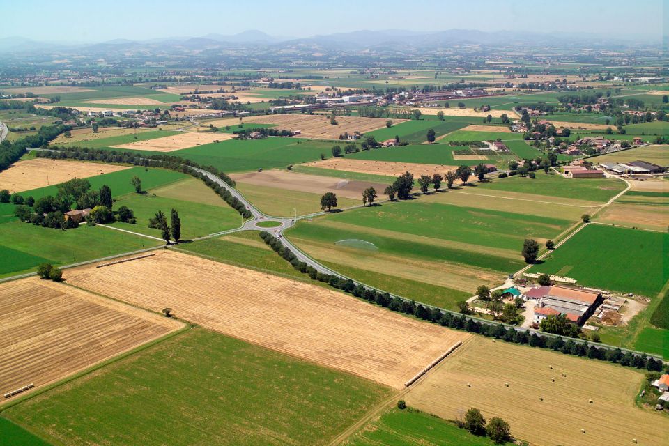 Cancellare ogni punto di riferimento della visione quotidiana per trovarne altri, inusuali, a diversi metri da terra. Rimanere come appesi fuori, senza lo sportello dell’elicottero, per fermare in una immagine il mondo che di solito ci sembra molto più grande. E’ la mia più grande passione e mi ha portato a scoprire le orme del passato che lasciano sagome di fiumi e domus romane nei campi arati, ma anche a fotografare gli spazi del futuro: dove sono previste strade o importanti infrastrutture.